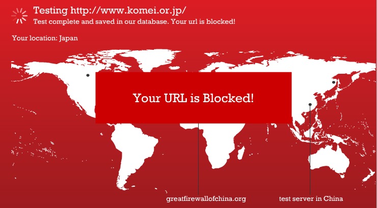 GiGAZINEさんの「中国政府の検閲対象かをチェックできる「Great Firewall of China」」という記事で紹介されていたのですがGreat Firewall of Chinaというサイトでwebサイトが中国から閲覧可能かしらべることができます。