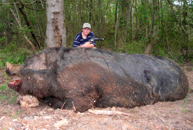 アラバマ州モントゴメリー――アラバマ州で父親と一緒に狩猟した11歳少年が短銃で体重約477キロという「巨大イノシシ」を射止め、話題になっている。体長は2メートル80センチ。最初に遭遇した時について「怖かったけど、興奮もした」と振り返っている。